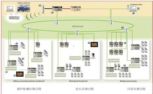1、自動化控制系統(tǒng)構(gòu)成 凈水廠的綜合自動化監(jiān)控系統(tǒng)通常分為設(shè)備層、控制層及管理層三層結(jié)構(gòu)?刂茖油瓿删唧w的取水、混凝、沉淀、過濾、送水等環(huán)節(jié)的測控;管理層主要負(fù)責(zé)狀態(tài)監(jiān)控、數(shù)據(jù)采集、故障報警處理等工作?刂茖拥母鞴に嚟h(huán)節(jié)位置分散,位于中控室的控制中心將進(jìn)行統(tǒng)一監(jiān)控,因此具有集中監(jiān)控、分散控制的特點(diǎn)。