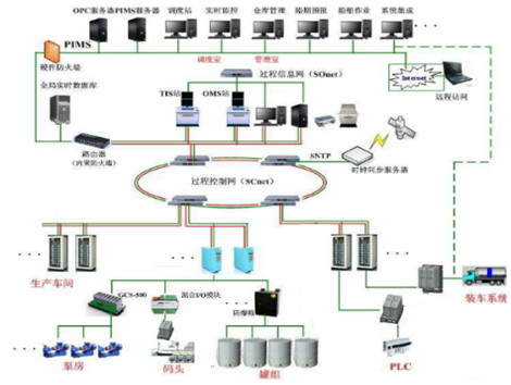 我司提供了基礎(chǔ)油儲(chǔ)運(yùn)、成品油罐區(qū)高效管理,以及專業(yè)油品發(fā)運(yùn),油庫(kù)高效管理的整體解決方案。 罐區(qū)網(wǎng)絡(luò)結(jié)構(gòu)分為三層: 1.上位監(jiān)控層(管理層) 將使用高性能工業(yè)交換機(jī)組建光纖工業(yè)以太網(wǎng),和計(jì)算機(jī)監(jiān)控系統(tǒng)中央控制室的數(shù)據(jù)庫(kù)服務(wù)器、WEB服務(wù)器、操作員站、工程師站等共同構(gòu)成了系統(tǒng)的管理層。整個(gè)監(jiān)控系統(tǒng)采用西門子WINCC軟件對(duì)罐區(qū)進(jìn)行集中管理,實(shí)現(xiàn)對(duì)整個(gè)油庫(kù)項(xiàng)目的工藝流程、工藝參數(shù)、趨勢(shì)、報(bào)警、操作記錄等進(jìn)行操作顯示和記錄,泵根據(jù)工藝對(duì)閥門、泵等設(shè)備進(jìn)行自動(dòng)控制。 HYE潤(rùn)滑油管理軟件可以將各罐區(qū)溫度、液位等參數(shù)進(jìn)行采集,統(tǒng)計(jì),并根據(jù)罐容表和GB/1885-19981進(jìn)行罐容計(jì)算,標(biāo)準(zhǔn)密度計(jì)算、20℃和15℃標(biāo)密轉(zhuǎn)換、自動(dòng)發(fā)油計(jì)算、質(zhì)量計(jì)算、油品體積計(jì)算等。 中心監(jiān)控軟件可以把現(xiàn)場(chǎng)的作業(yè)流程進(jìn)行調(diào)度和管理,全面提高罐區(qū)的運(yùn)作效率和產(chǎn)品流轉(zhuǎn)速度。 2.中心設(shè)備層 使用西門子高效PLC技術(shù)為核心,完成油庫(kù)現(xiàn)場(chǎng)數(shù)據(jù)的采集。該系統(tǒng)通過(guò)光纖工業(yè)以太網(wǎng)與中央控制室的上層監(jiān)控系統(tǒng)相連接,融合為一個(gè)有機(jī)的整體,實(shí)現(xiàn)對(duì)罐區(qū)的集中管理,分散控制。 3.現(xiàn)場(chǎng)控制層 由遠(yuǎn)程控制站、球掃站、現(xiàn)場(chǎng)通信接口、智能儀表等構(gòu)成系統(tǒng)現(xiàn)場(chǎng)層,采用西門子Profibus,Profinet等先進(jìn)的工業(yè)網(wǎng)絡(luò)與中心設(shè)備層進(jìn)行無(wú)縫連接。 3.工藝流程圖及系統(tǒng)實(shí)現(xiàn)功能